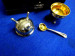 2 Stück Metall-Eierbecher, bicolor, leider nur 1 Löffel