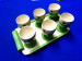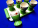 6 Eierbecher auf Holztablett, DDR, handemalt