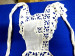 alte Leinenschürze / Latzschürze mit umfangreicher Lochstickerei