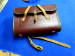 kleiner Leder-Schulranzen, 34 x 23 x 9 cm, mit Leder-Riemchen